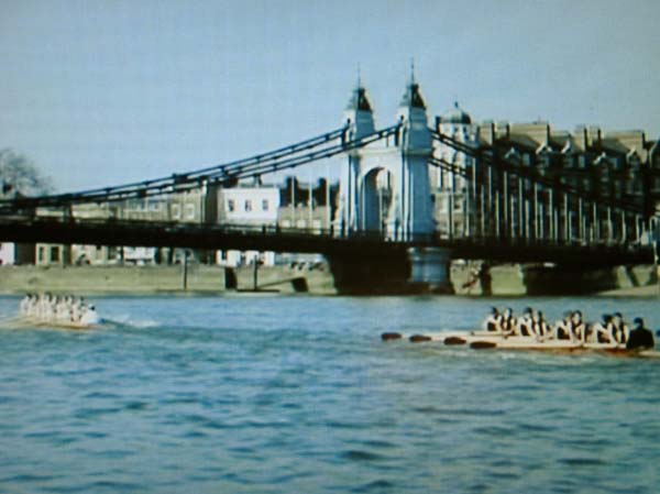 The Oxford boat then ram them and break the boat in half, Cambridge sink and the Oxford crew go back - apparently to help but have a big punch up with cambridge rowers instead.